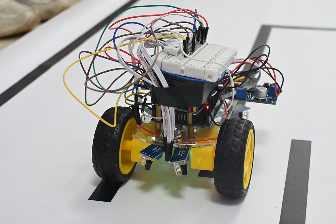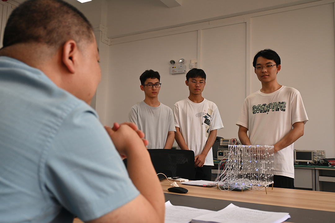 确定选题后,同学们利用课余时间,在开放实验中心完成了作品的制作、调试,经过一个多月紧张的备赛,6月20日,作品迎来正式考核。